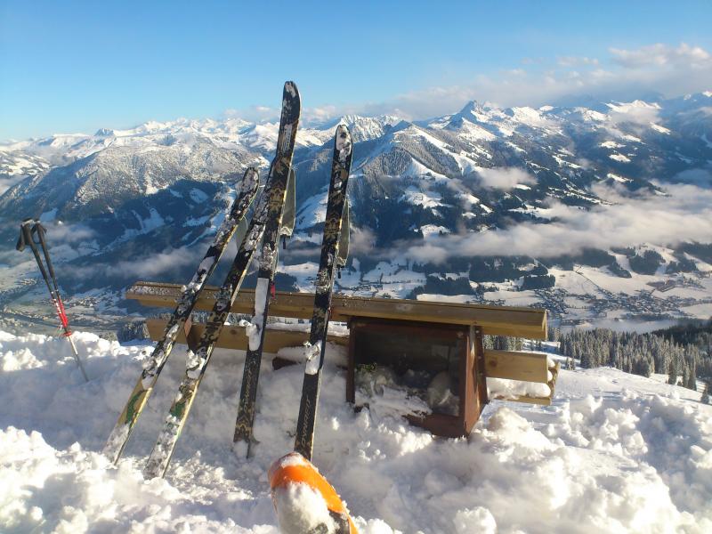 Im Rucksack hatten wir natürlich Bergschuhe für den Abstieg, jedoch war die Schnee-Situation besser als gedacht, und so fuhren wir ab ca. der Hälfte der Hohen Salve mit unseren wohl bemerkt alten Skiern ab. Natürlich krachte es ein paar mal, aber das war ja wohl zu erwarten.