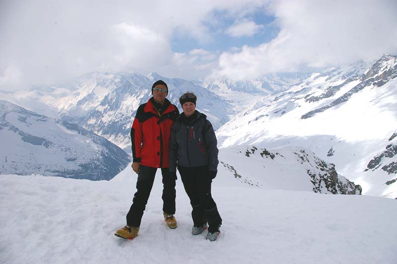 Am Ostermontag gings auf den Hohen Riffler. Da wir noch nie droben waren, gingen wir einfach ein paar Einheimischen hinterher. Die Abfahrt war genial – in der großen Mulde die direkt zur Skipiste führt – toller Firn.