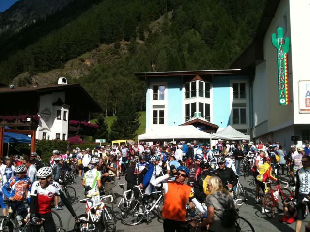Über den Brenner ging’s in den sonnigen Süden – von Sterzing auf den Jaufenpass, 2094m hoch. Eine rasse Abfahrt mit einigen Tücken nach St. Leonhard wo der Finale und für den Großteil des Feldes wohl härteste Anstieg dieses Sommers – rauf auf das knapp 2500m hohe Timmelsjoch begann! Wo sonst hat man quasi am Ende des Rennens einen finalen Anstieg mit knapp 1800Hm am Stück?