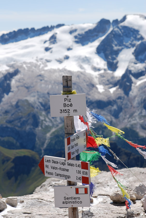 Der diesjährige Ausflug des Schiclub Söll führte uns am Samstag in die Südtiroler Dolomiten. Das Ziel war das Pordoijoch – Sass Pordoi und der Piz Boè.  Mit der Bahn ging es vom Pordoi-Joch hinauf zum Sass Pordoi. Dort oben erwartete uns ein phänomenales Panorama, da durch das schlechte Wetter am Vortag dort etwas Schnee und Eis lag. Richtung Piz Boè waren hunderte von Wanderern unterwegs, die wir aber zum Großteil hinter uns lassen konnten. Bei der Schlüsselstelle hinauf zum Boè musste aber dann mit Wartezeiten gerechnet werden, da einige Leute die Kletterpassagen mit Eis eindeutig unterschätzt haben, und sich kaum hinauf getraut haben. Am Gipfel wurden wir aber dann mit einen sensationellen Panorama und einer Fernsicht bis fast nach Hause belohnt. Der Abstieg erfolgte dann über die Kostner-Hütte zum Campolongo-Pass.Die Überschreitung des Piz Boè ist mit sicherheit eine traumhafte Tour, bei der man aber am Besten mit zwei Autos unterwegs ist, um wieder zurück zum Pordoi-Joch zu kommen.![]()