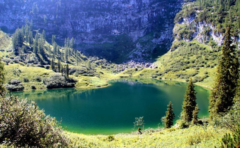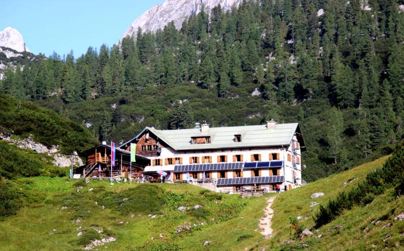 Um 5 Uhr starteten wir in Maria Alm am Parkplatz in der Stablerau. Im Dunklen steigen wir über den Sandweg auf. Als wir den Felssteig erreichten, dämmerte es. Bis zum Riemannhaus brauchten wir circa 2 Stunden, es war 7 Uhr als wir oben ankamen und erstmal Brotzeit machten. Saukalt war hier oben, besonders, da es am Start der Tour fast schon schwül war, ein echter Schock! Nach einer kurzen Stärkung gingen wir auf den Spuren der Almer Wallfahrer weiter ins Steinerne Meer. Dessen Durchquerung bis zum Funtensee erforderte weitere zwei Stunden. Etwas ernüchtert wurden wir am Kärlinger Haus: Es war nämlich noch zu früh zum Mittagessen, so mussten wir auf die mitgebrachte Brotzeit zurückgreifen oder warten. Bei einem Radler entschieden wir uns, rasch weiterzugehen. Und zwar nicht über die Saugasse, sondern über den Sagereckersteig nach Salet. So konnten wir noch den Grünsee mitnehmen und den Menschenmassen ausweichen, die sich in Kürze durch die Saugasse drängen werden. Der Abstieg über den Sagereckersteig ist zwar etwas mühsam, meine Begleiterinnen hörten kaum noch auf zu jammern und verfluchten mich ob meiner Wegauswahl, doch der Blick auf den Königssee von der Sgereckerwand entschädigte für die Mühsal des Abstieges! So war nach weiteren 3 Stunden die Saletalm erreicht, die letzte Etappe zur Seelände des Königssees erfolgte mit dem Boot. Eine tolle Tour!
